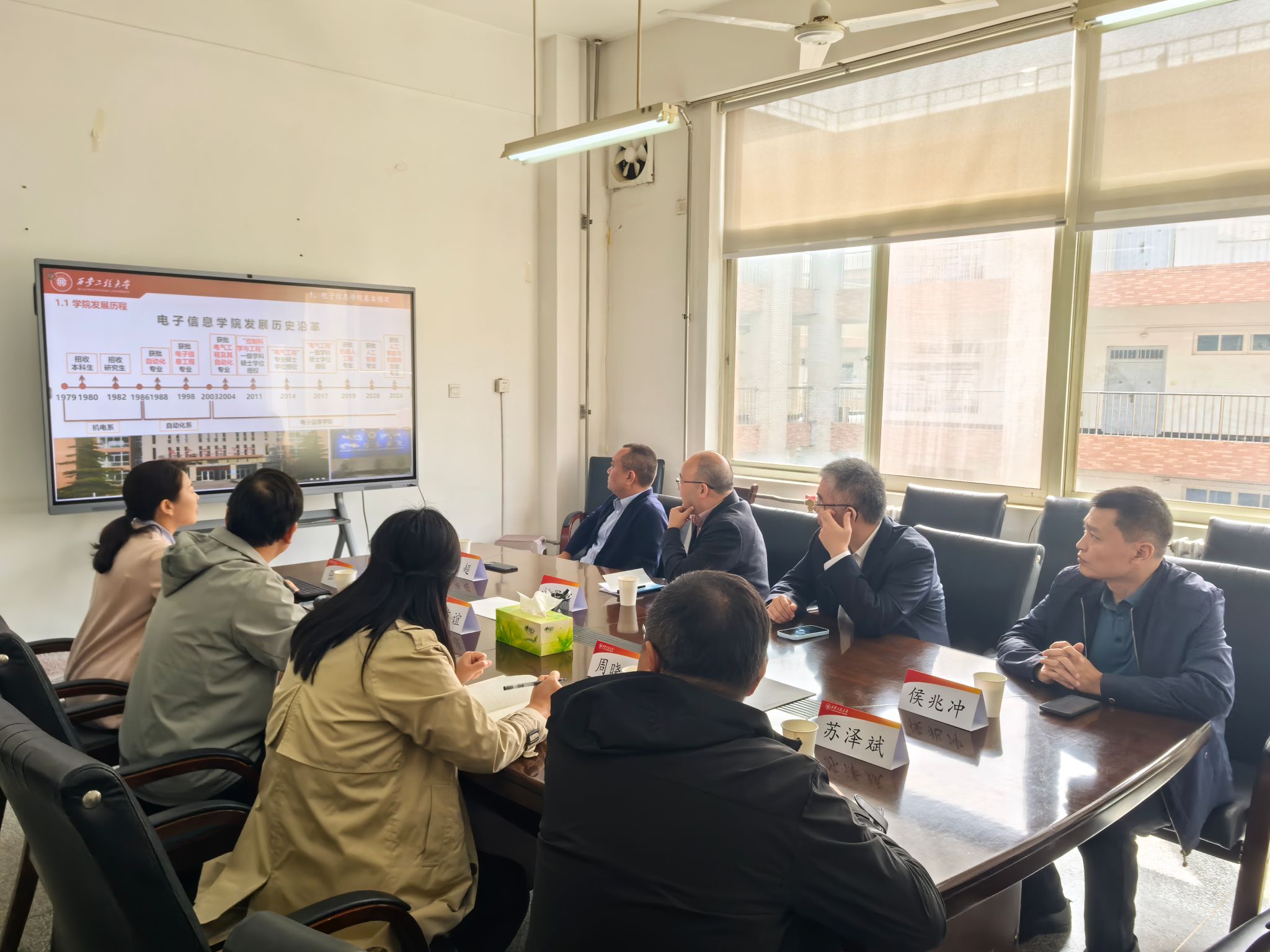 姚军辉介绍了公司的发展历程和产业布局,播放宣传片全面展示公司相关纺机产品和市场推广情况;师超介绍了公司年度招聘计划和校招的日程安排,也对吸纳优秀毕业生的企业和地方政府的配套待遇进行了详细说明;翟自勇对研究院开展的相关校企联合攻关的科研方向进行了介绍,双方在纺机状态监测和运动控制、深度大模型赋能新型制造方面进行了交流。经过双方深入的交流,姚军辉总经理表示将进一步明确合作方向,明晰实施合作路径。随后,姚军辉总经理一行参观了陕西省人工智能联合实验室,进一步了解了学院的科研方向和科研成果。